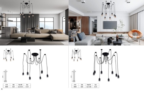 140 140 2000 2000 Art.Nr. Color Power (W) Base Art.Nr. Color Power (W) Base BH5361 BLACK max. 6 x 60 6 x E27 BH5381 BLACK max. 8 x 60 8 x E27 203